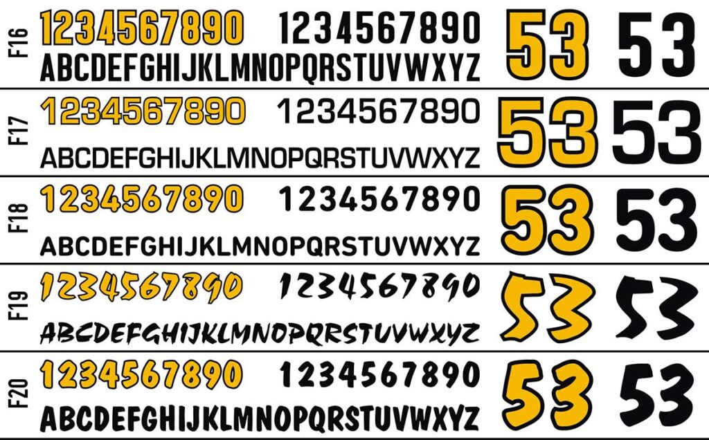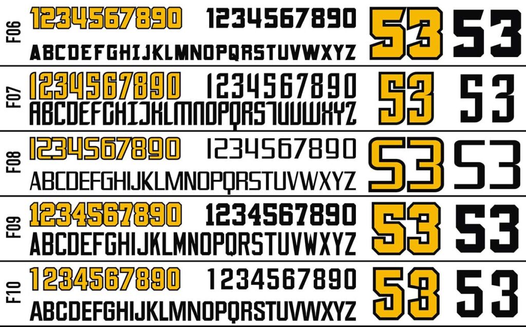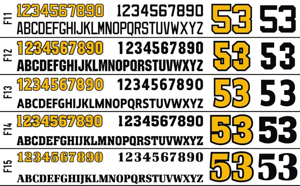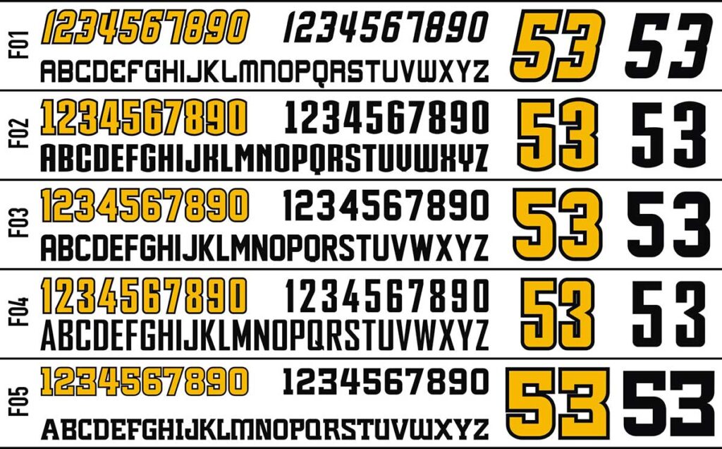 Eine Auswahl an dieversen Schriftarrten zur individuellen Beschriftung der Trikots mit Namen, Nummern und mehr.